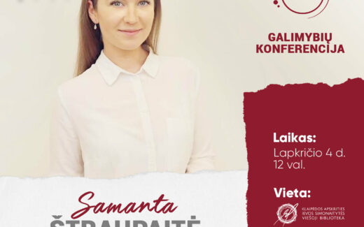 Kviečiame jaunimą aktyviai dalyvauti Galimybių konferencijoje, kurioje Lietuvos verslo kolegiją atstovaus ir pranešimą skaitys Tarptautinių ryšių ir projektų vadovė Samanta Štraupaitė