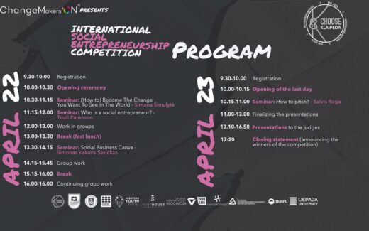 „Klaipėda – Europos jaunimo sostinė 2021“ Lyderystės platforma, kurią koordinuoja Lietuvos verslo kolegija kartu su ChangeMakersOn organizuoja dviejų dienų tarptautinio socialinio verslumo konkursą