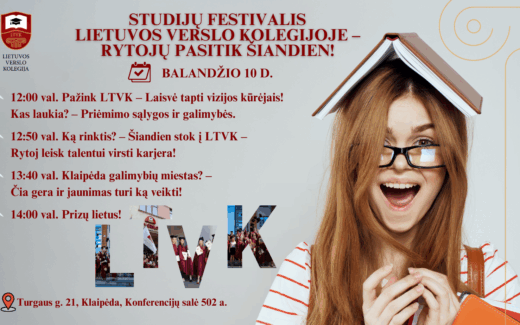 Jau rytoj renginys „Studijų festivalis Lietuvos verslo kolegijoje rytojų pasitik šiandien!“