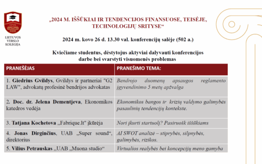 Mini konferencija – „2024 M. IŠŠŪKIAI IR TENDENCIJOS FINANSUOSE, TEISĖJE, TECHNOLOGIJŲ SRITYSE“