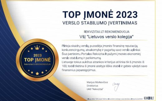 Lietuvos verslo kolegija – TOP įmonė 2023 / Verslo stabilumo įvertinimas