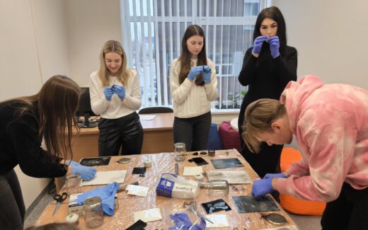Teisės ir teisėsaugos studentai praktinėje paskaitoje mokėsi biologinių pėdsakų paėmimo bei daktiloskopavimo metodikų