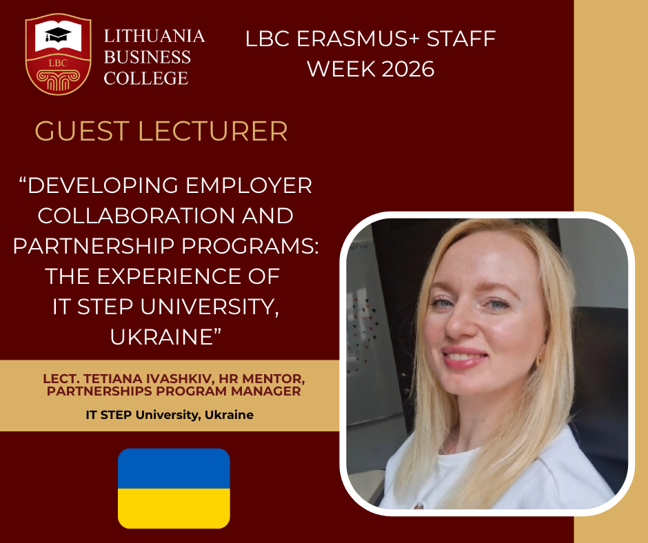 Lithuania Business College Erasmus+ Staff Week 2026, April 22, 10:00, Room 502