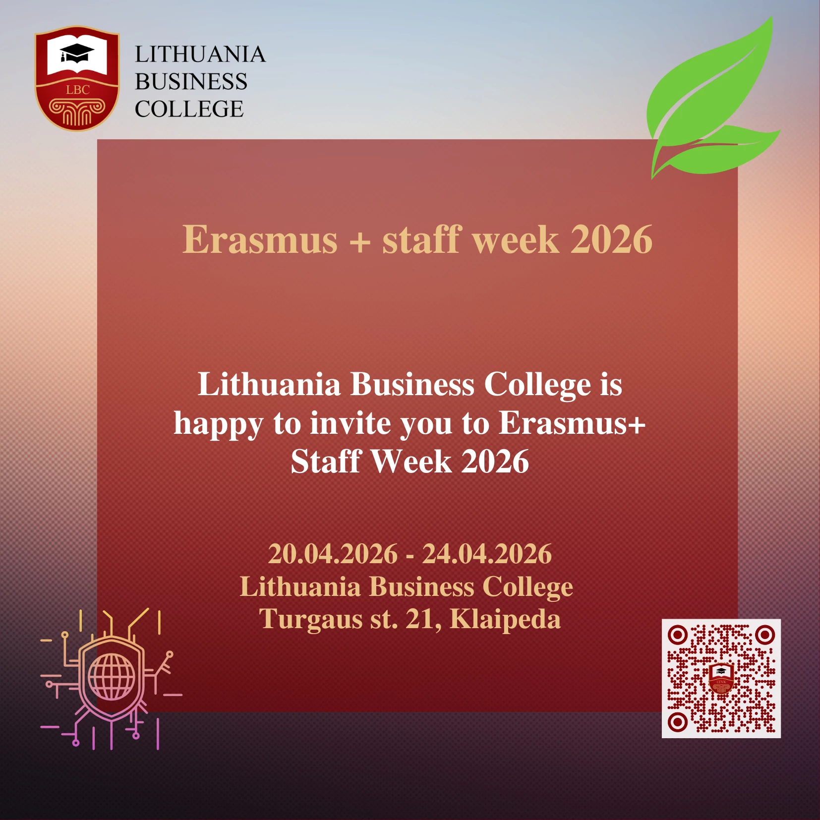 The Event will take place April 20 – April 24, 2026. More information here: https://ltvk.lt/en/internationalization-and-projects/erasmus/staff-week/