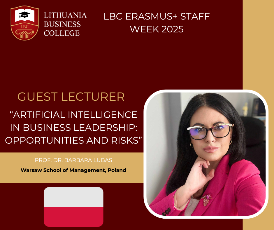 Prof. Dr. Barbara Lubas is sharing insights on leveraging AI for effective business leadership while navigating its opportunities and risks. Let’s warmly welcome her to Lithuania Business College!