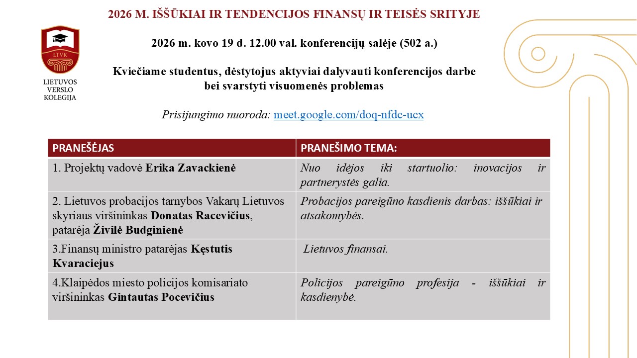 2026 M. IŠŠŪKIAI IR TENDENCIJOS FINANSŲ IR TEISĖS SRITYJE“