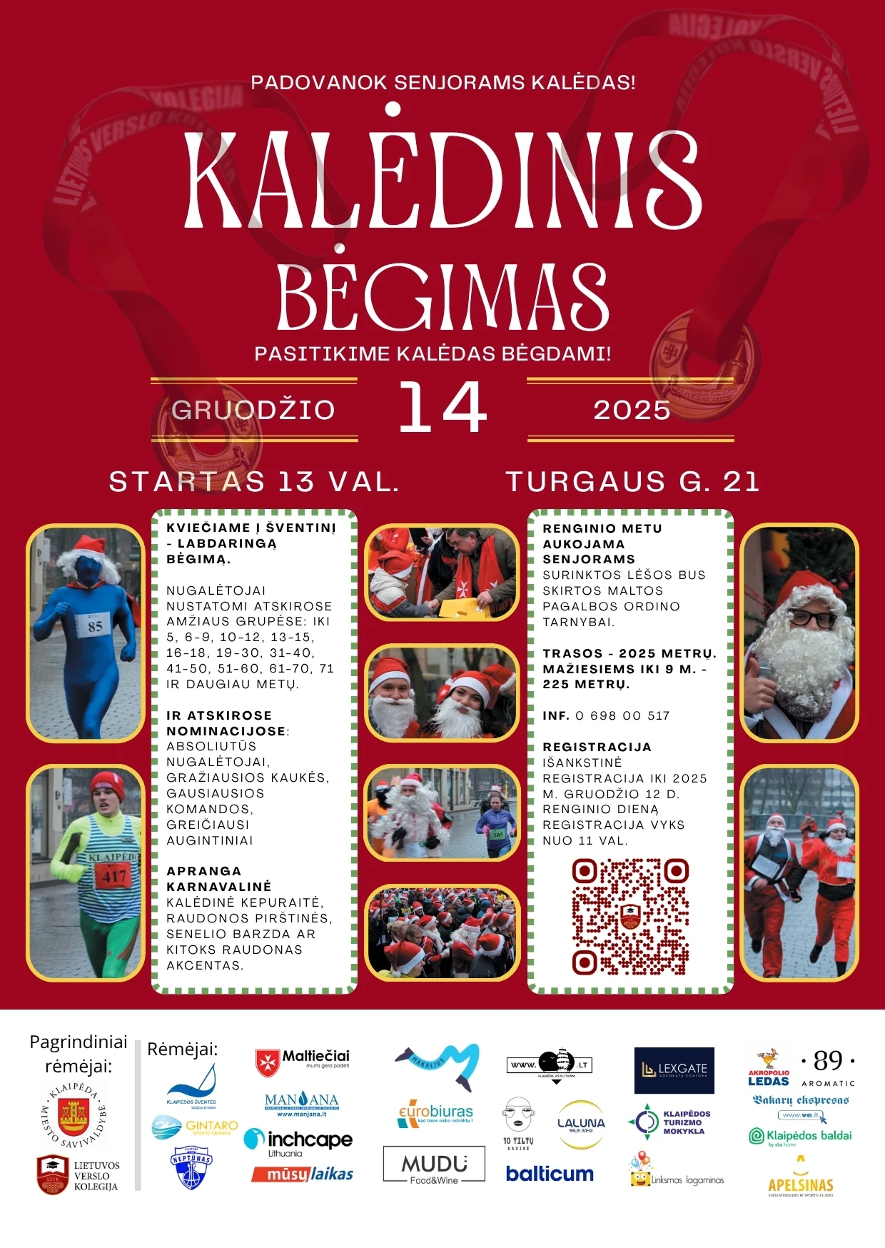 Bėgimas vyks 2025 m. gruodžio 14 d., renginio pradžia – 13 val.