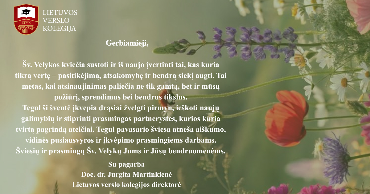 Lietuvos verslo kolegija sveikina socialinius partnerius su Šventomis Velykomis!