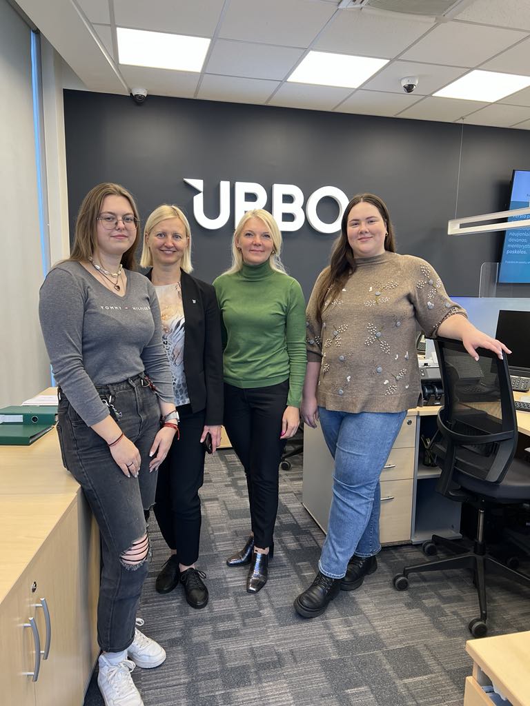 Po išvykstamosios paskaitos Lietuvos verslo kolegijos Skaitmeninės ekonomikos studijų programos SE-23 grupės studentė Karina Mozgliakovaitė (nuotraukoje pirma dešinėje) buvo pakviesta į darbo pokalbį ir sėkmingai pradėjo profesinę karjerą URBO banke.