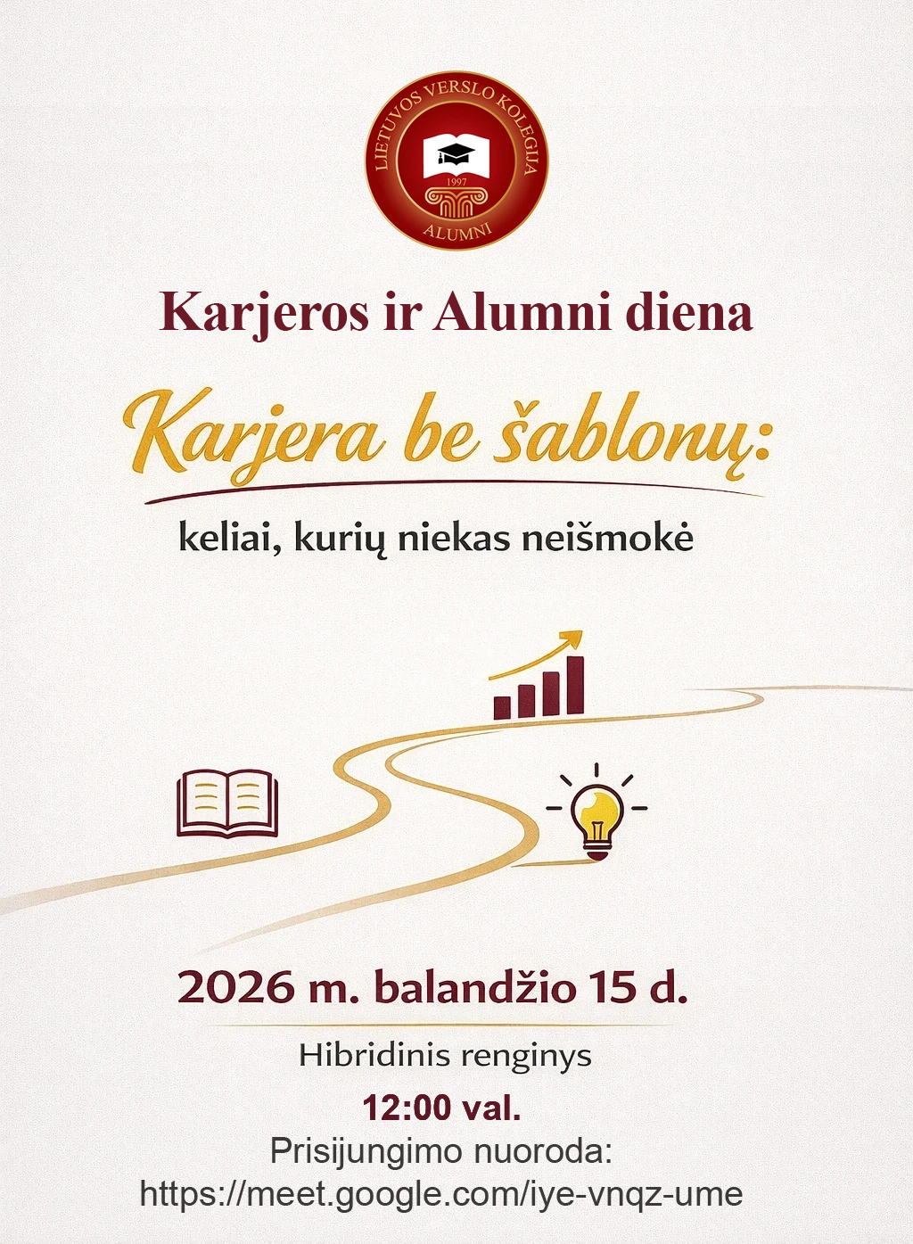 Lietuvos verslo kolegija – tai bendruomenė, kuri kuria savo istoriją ir ateitį. Kviečiame tapti šios bendrystės dalimi ir dalyvauti Karjeros ir Alumni dienos renginyje: