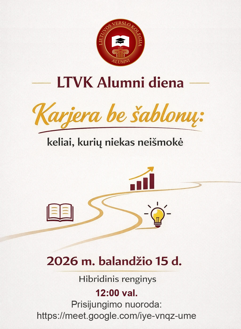 Lietuvos verslo kolegija – tai bendruomenė, kuri kuria savo istoriją ir ateitį. Kviečiame tapti šios bendrystės dalimi ir dalyvauti Alumni renginyje: