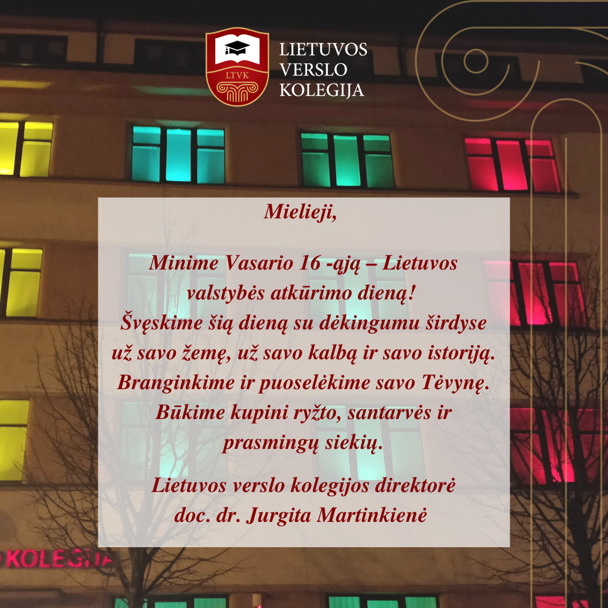 Švęskime šią dieną su dėkingumu širdyse už savo žemę, už savo kalbą ir savo istoriją. Branginkime ir puoselėkime savo Tėvynę. Būkime kupini ryžto, santarvės ir prasmingų siekių.