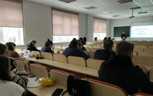 Šiandien Lietuvos verslo kolegijoje atstovė iš Algoos agentūros pristatė apie tarptautines praktikos galimybes studentams