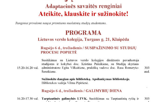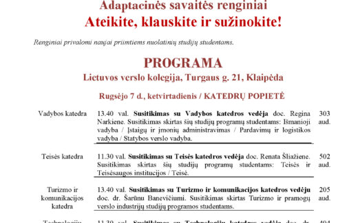 Adaptacinės savaitės renginiai – SUSIPAŽINIMO SU STUDIJŲ PROCESU POPIETĖ / GALIMYBIŲ DIENA