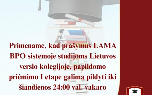 Vakar baigėsi papildomo LAMA BPO priėmimo I etapo paraiškų teikimas Lietuvos verslo kolegijoje