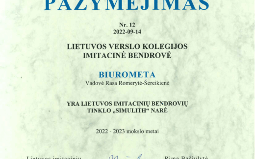 Lietuvos verslo kolegijos IB „Biurometa“ Simulith tinklo narė 2022 – 2023 m.m.