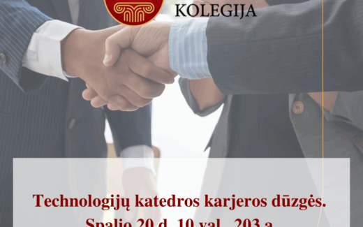 Technologijų katedra organizuoja Karjeros dieną būsimiems IT srities specialistams.