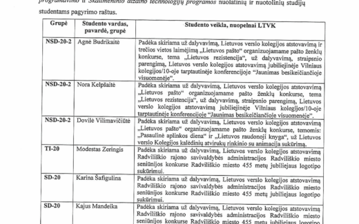 Įsakymas dėl studentų pagyrimo raštų