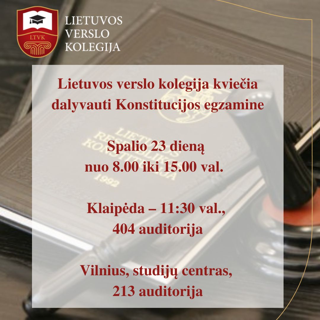 Kviečiame visus Lietuvos verslo kolegijos studentus prisijungti prie nacionalinės iniciatyvos – Konstitucijos žinių išbandymo, kuris vyks spalio 23 d.